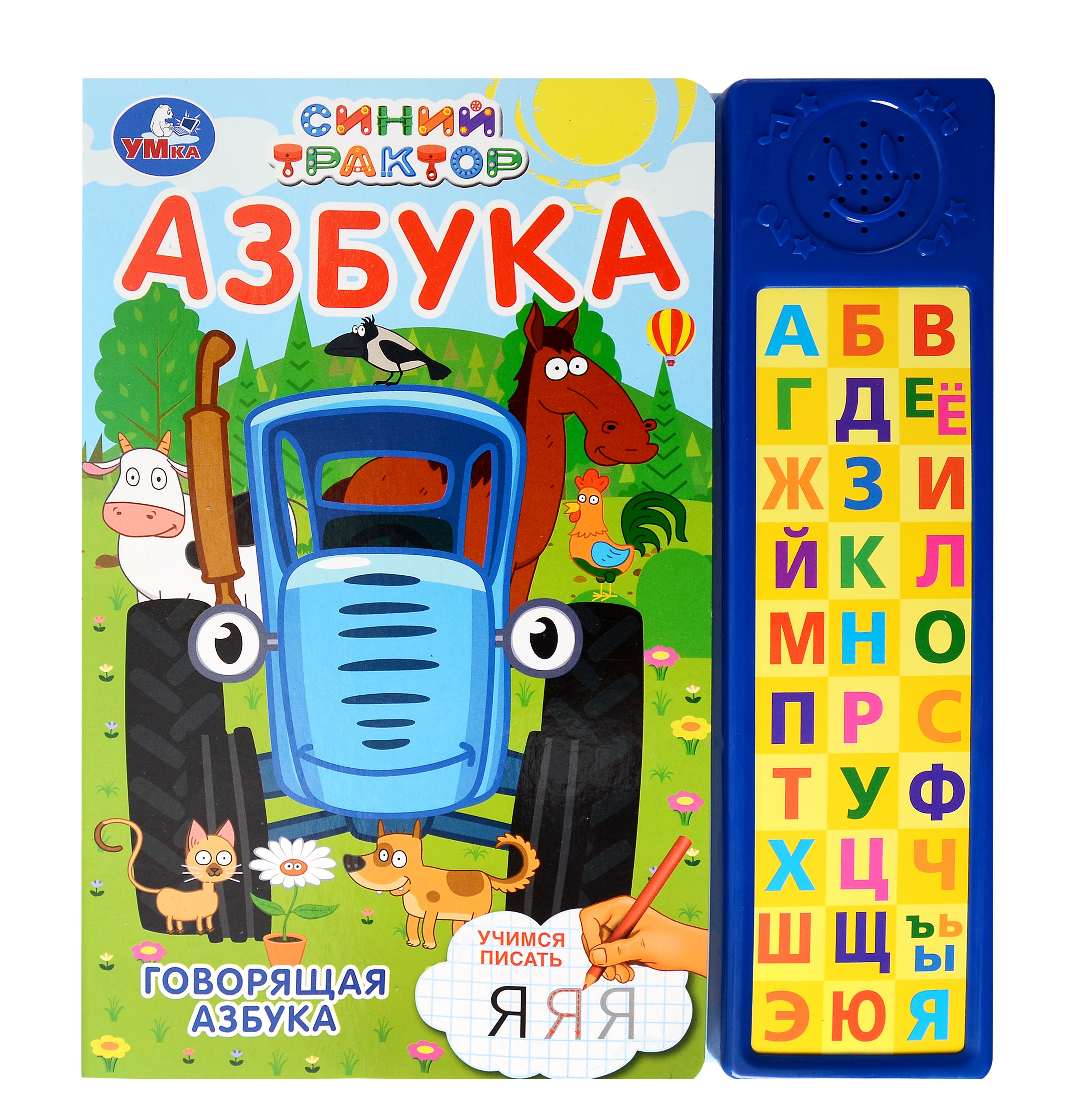 Озвученная книга «Синий Трактор. Говорящая азбука» ТМ «УМка» станет прекрасным обучающим подарком для маленьких поклонников мультсериала про приключения весёлого Трактора:- модуль с 30 звуковыми кнопками- учим азбуку- пишем буквыНа каждой страничке этой занимательной книги ребёнка ждут крупные красивые иллюстрации с буквами и персонажами из любимого мультсериала. Малыш с удовольствием будет нажимать на кнопки, слушать звучание букв, рассматривать яркие страницы и в лёгкой игровой форме учить азбуку. Кроме того, с помощью стираемого маркера (не входит в комплект) он сможет потренировать написания букв. Книга сделана из плотного картона, поэтому мамы могут не опасаться, что ребёнок порвёт странички.
