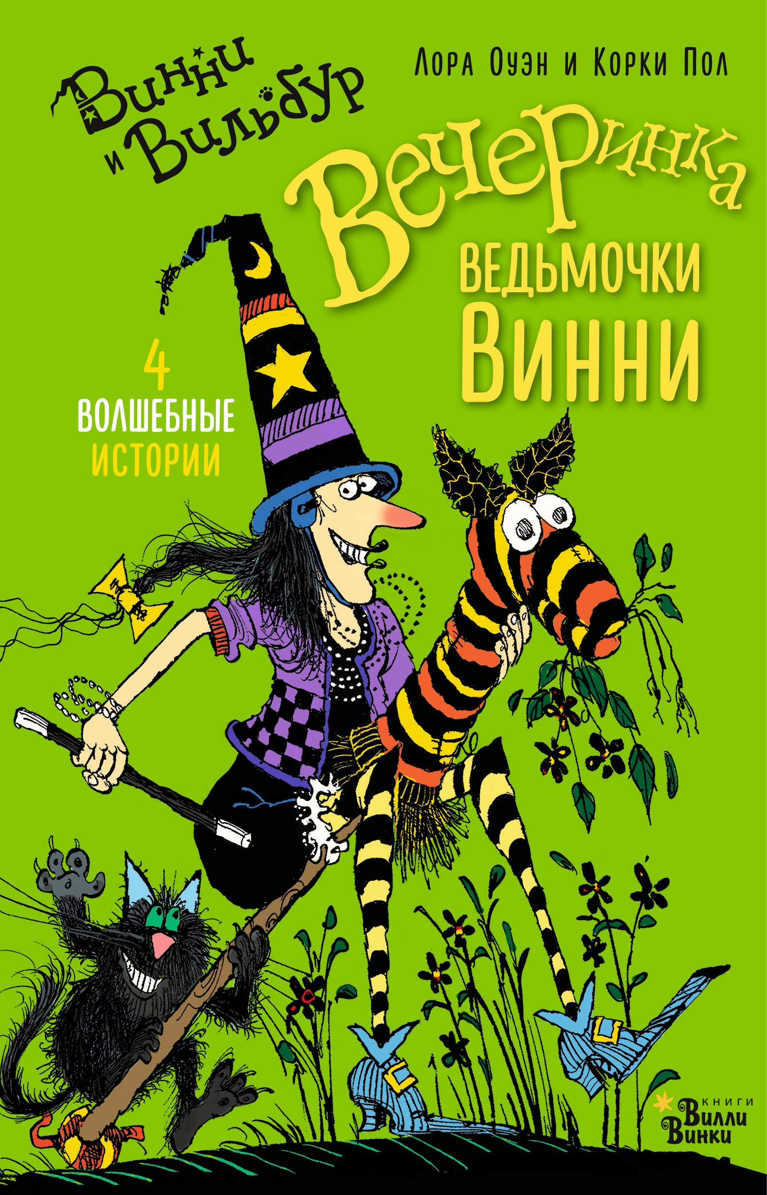 У весёлой ведьмочки Винни и её чёрного кота Вильбура ни минуты покоя, ведь нужно срочно превратить старый драндулет в новенькое блестящее авто, вызывать дух Великой тёти Уинфред, чтобы угомонить непослушных детей, устроить чаепития для родственников с чудинкой и скачки на самодельной лошади. Ведьмочка Винни и кот Вильбур радуют и удивляют детей и взрослых по всему миру. По мотивам их приключений создан мультсериал, а общий тираж книг составляет более 7 миллионов. Благодаря запоминающимся, невероятно смешным и обаятельным иллюстрациям Корки Пола истории о Винни и Вильбуре удостоены почётной награды The Childrens Book Award. "Вечеринка ведьмочки Винни" включает в себя 4 зажигательные истории: «Винни едет отдыхать», «Винни в цветнике», «Вечеринка Винни» и «Скачки Винни».