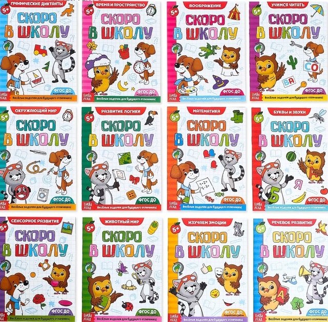 Вашему вниманию предлагается Набор из 12 обучающих книг "Готовимся к школе". . .В наборе: . .1. "Математика"; .2. "Речевое развитие"; .3. "Развитие логики"; .4. "Воображение"; .5. "Время и пространство"; .6. "Сенсорное развитие"; .7. "Изучаем эмоции"; .8. "Животный мир"; .9. "Буквы и звуки"; .10. "Графические диктанты"; .11. "Учимся читать"; .12. "Окружающий мир".