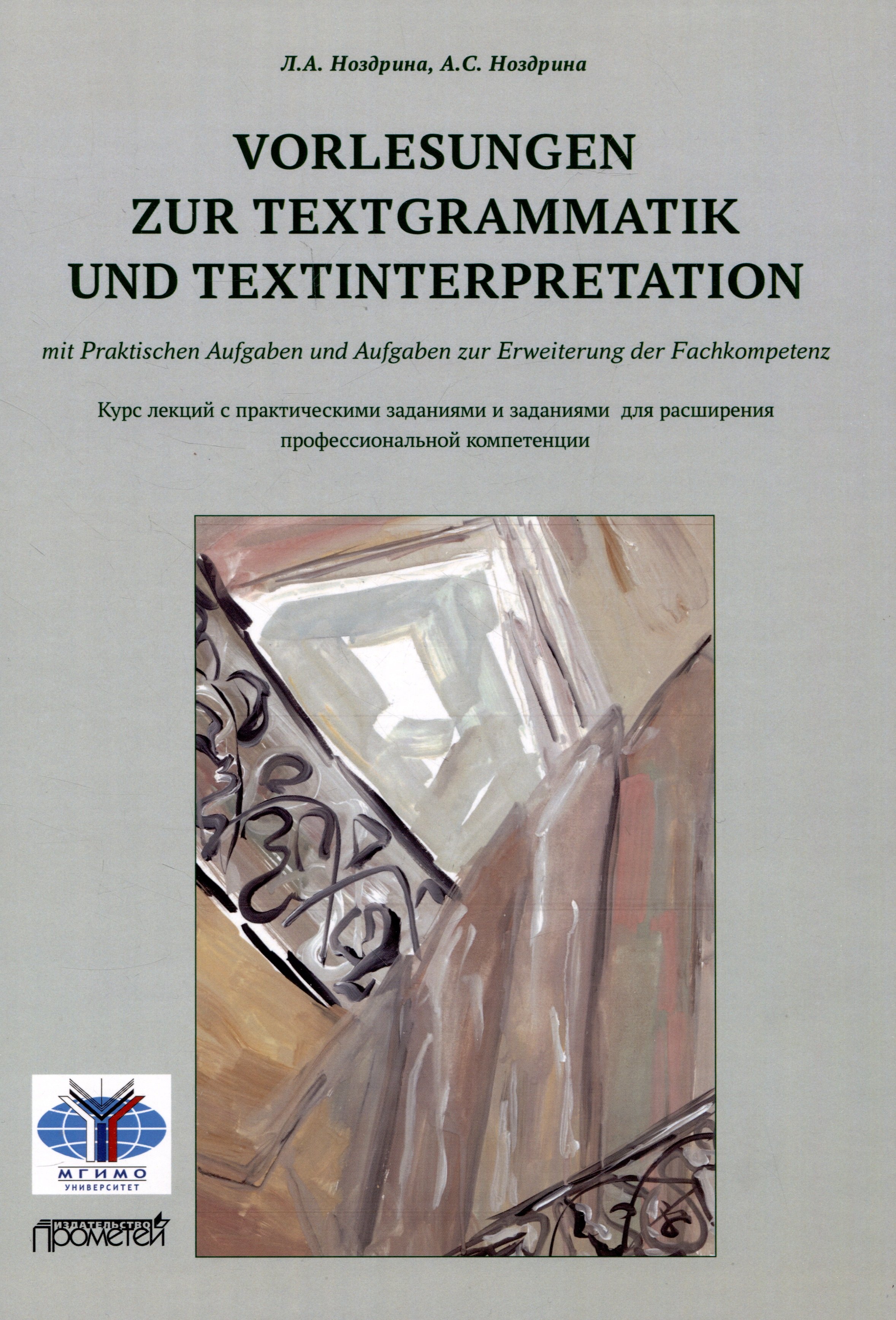 Предлагаемое учебное пособие представляет собой курс лекций по интерпретации текста с опорой на теорию текстовых сеток, разработанную профессором Л.А. Ноздриной в рамках ее диссертационного исследования. В отличие от ранее опубликованных трудов Л.А. Ноздриной, таких как «Поэтика грамматических категорий», «Интерпретация художественного текста. Поэтика грамматических категорий» и «Стилистика современного немецкого языка», данное учебное пособие ориентировано на более широкий круг интересующихся вопросами интерпретации текста и грамматики текста. Лежащие в основе теории пять текстовых сеток — темпоральная, локальная, персональная, модальная и референтная — позволяют провести подробный анализ текста в первую очередь с учетом позиций теоретической грамматики и лингвистики текста, а также с учетом филологического подхода. Текст лекций снабжен обновленными дефинициями, расширенным по отношению к предыдущим публикациям разделом «практические задания», в котором представлены преимущественно художественные тексты с методической разработкой для анализа. Дополнительно составленные теоретические вопросы для расширения профессиональной компетенции к каждой из 12 лекций позволяют самостоятельно подробно изучить терминологический аппарат не только грамматики текста,но и общего языкознания, лексикологии и стилистики текста. В оформлении обложки использована иллюстрация Ноздриной А.С. «Движение вверх».