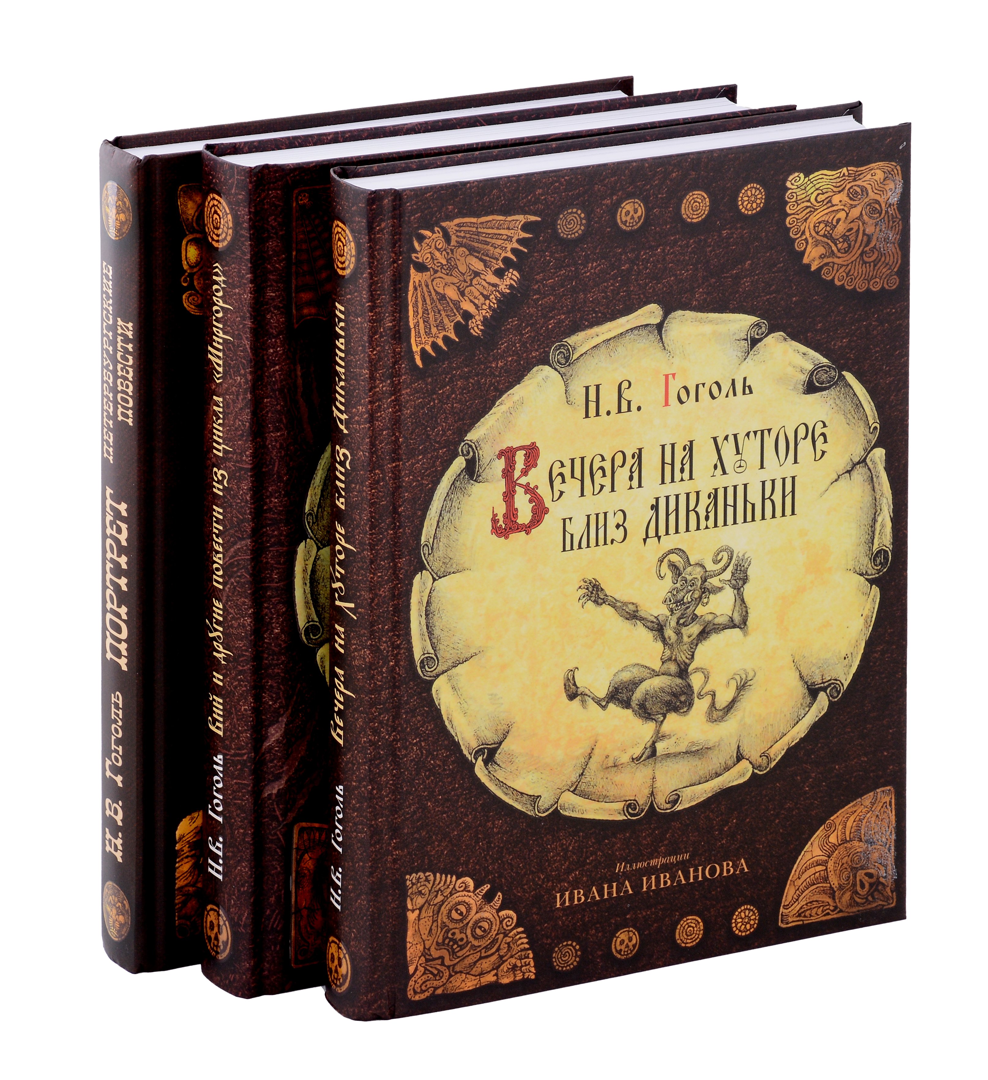 Комплект из 3 книг: «Вечера на хуторе близ Диканьки» Подарочное издание «Вечера на хуторе близ Диканьки» выпущено к годовщине смерти Николая Васильевича Гоголя. Сказочные иллюстрации Ивана Иванова погружают читателя в атмосферу «тихой украинской ночи». «Вий и другие повести из цикла „Миргород“» В книгу вошли самые любимые российским читателем произведения Н. В. Гоголя. «Вий» с леденящим душу сюжетом и колоритными персонажами, эпический «Тарас Бульба» и другие повести. Иван Иванов, который создал блестящие иллюстрации к «Вечерам на хуторе близ Диканьки» продолжил работу и над изданием «Вий и другие повести из цикла „Миргород“». «Портрет. Петербургские повести» Серия «Коллекция „Метаморфозы“» пополнилась долгожданным третьим изданием Н. В. Гоголя «Портрет. Петербургские повести». Литературные образы петербуржцев XIX века, впечатляют и пугают современного читателя своей реалистичностью, не меньше, чем мистичностью. Ну, а Петербург Гоголя, безусловно, — главный герой каждой повести. Иллюстрации Ивана Иванова и Виктории Денисовой.